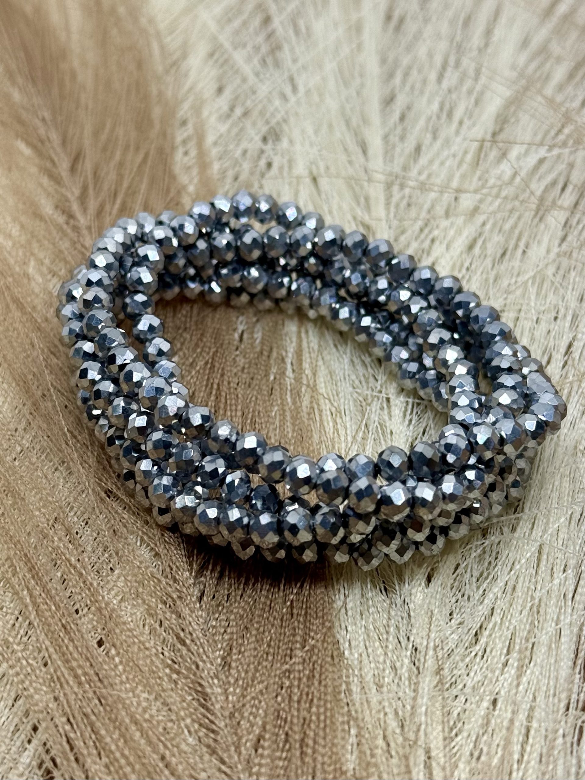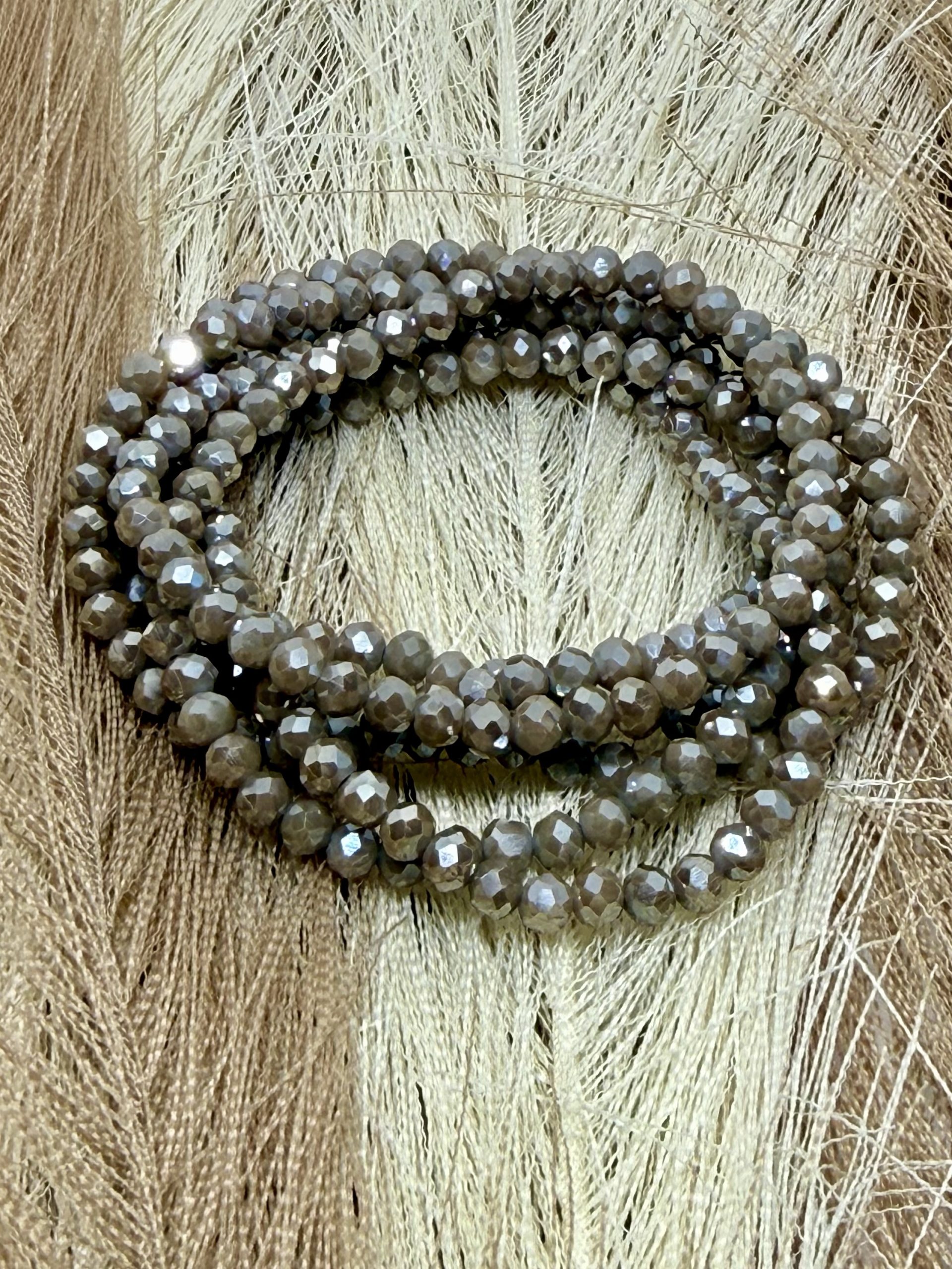 Ses perles facettées taupe aux reflets subtils captent la lumière avec discrétion et raffinement.