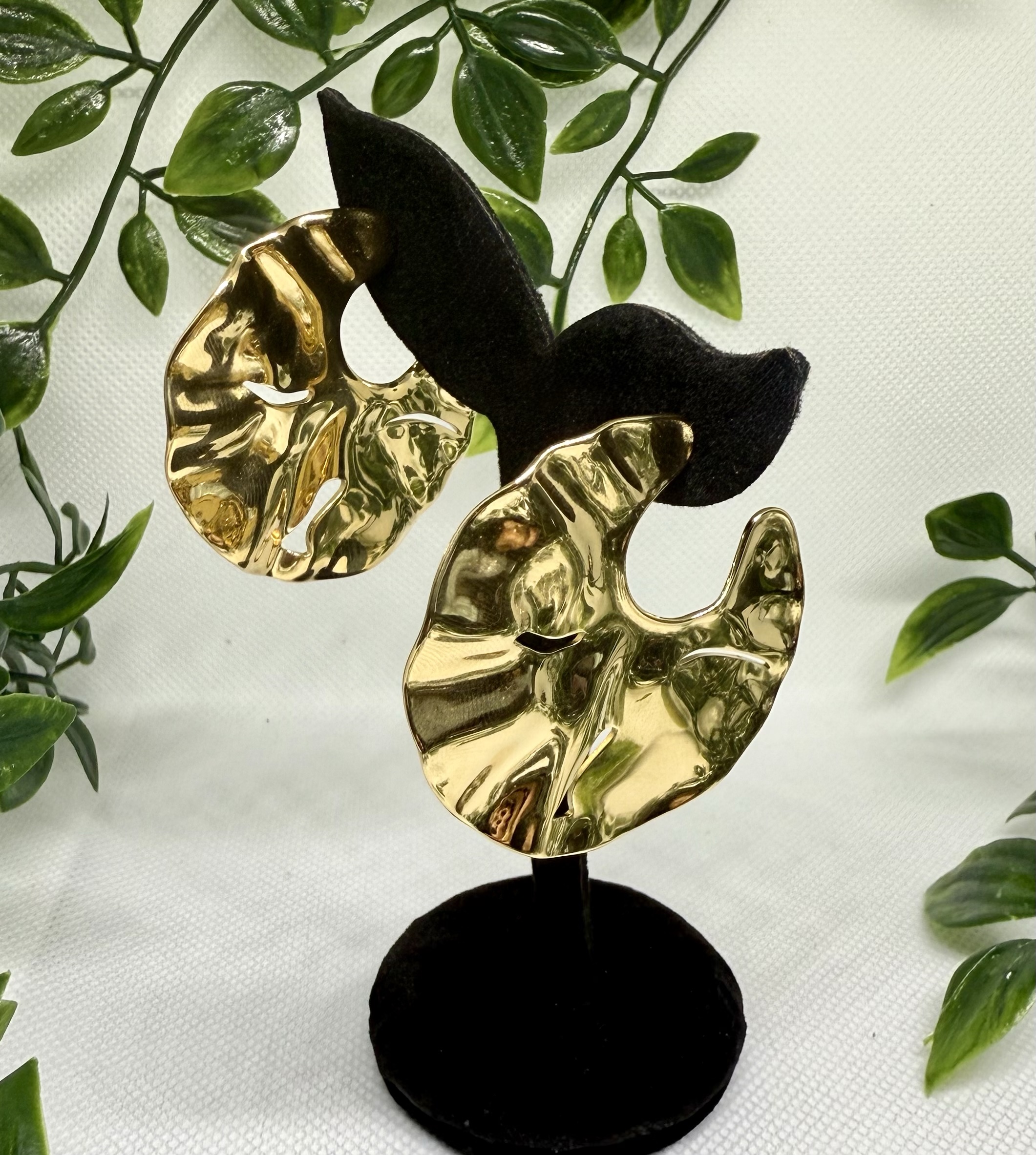 Affirmez votre style avec les boucles LÉNA, au design cœur irrégulier en acier inoxydable doré et martelé.