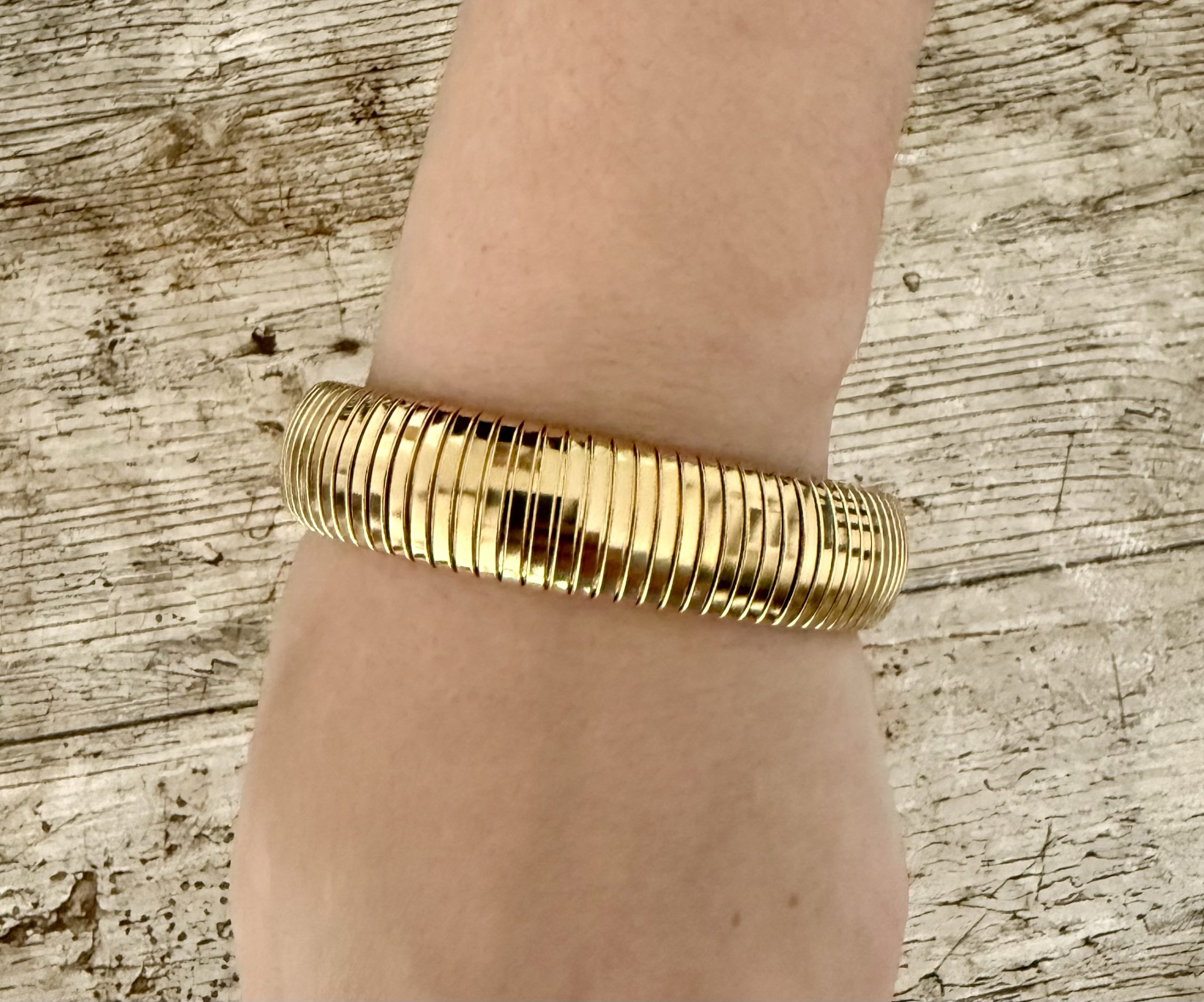 Apportez une touche de raffinement à votre poignet avec le BRACELET ÉLÉA, un bijou finement torsadé en acier inoxydable doré.
