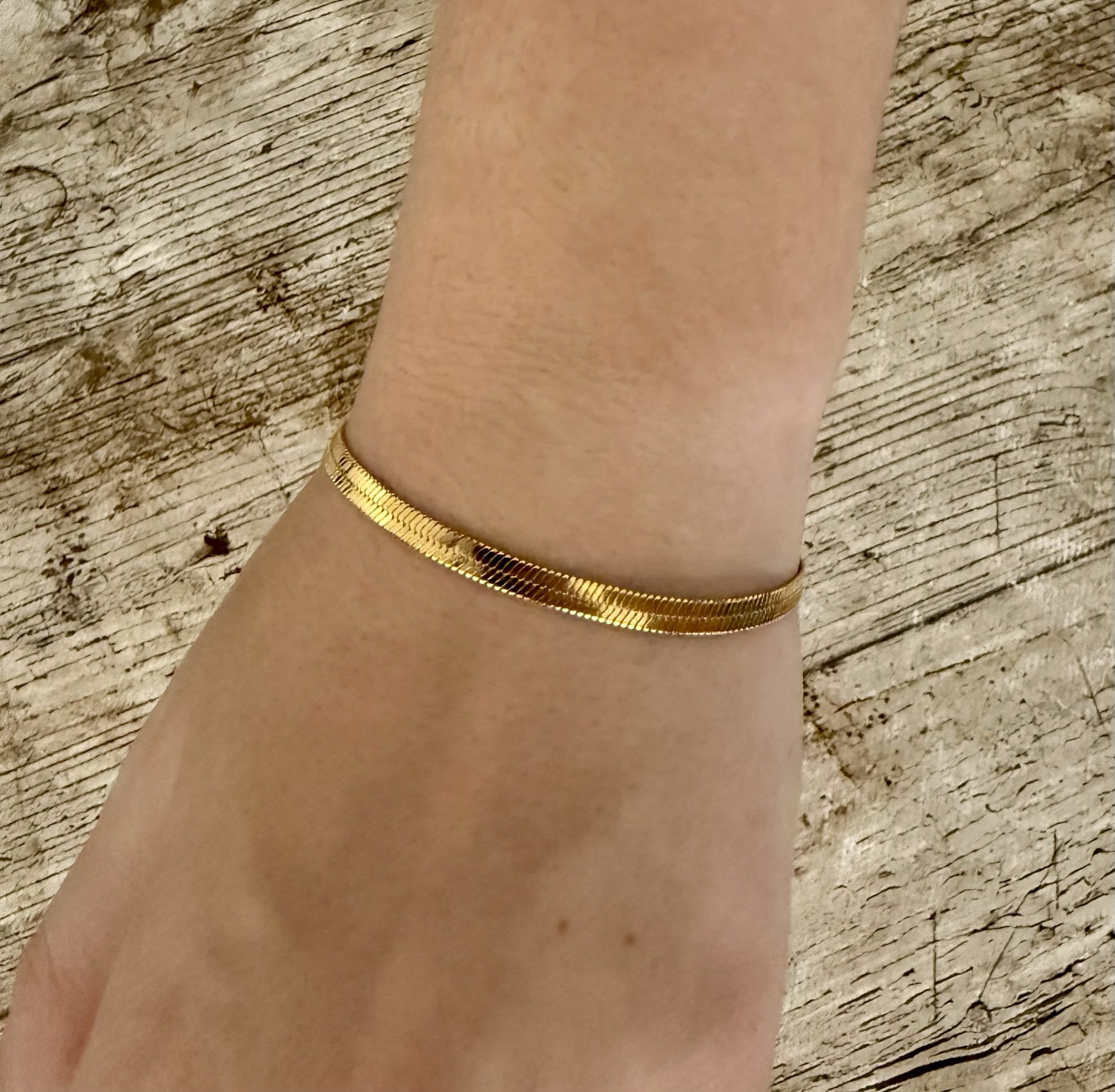 Sa forme plate et délicatement texturée capte la lumière à chaque mouvement, apportant une touche de sophistication à votre poignet.