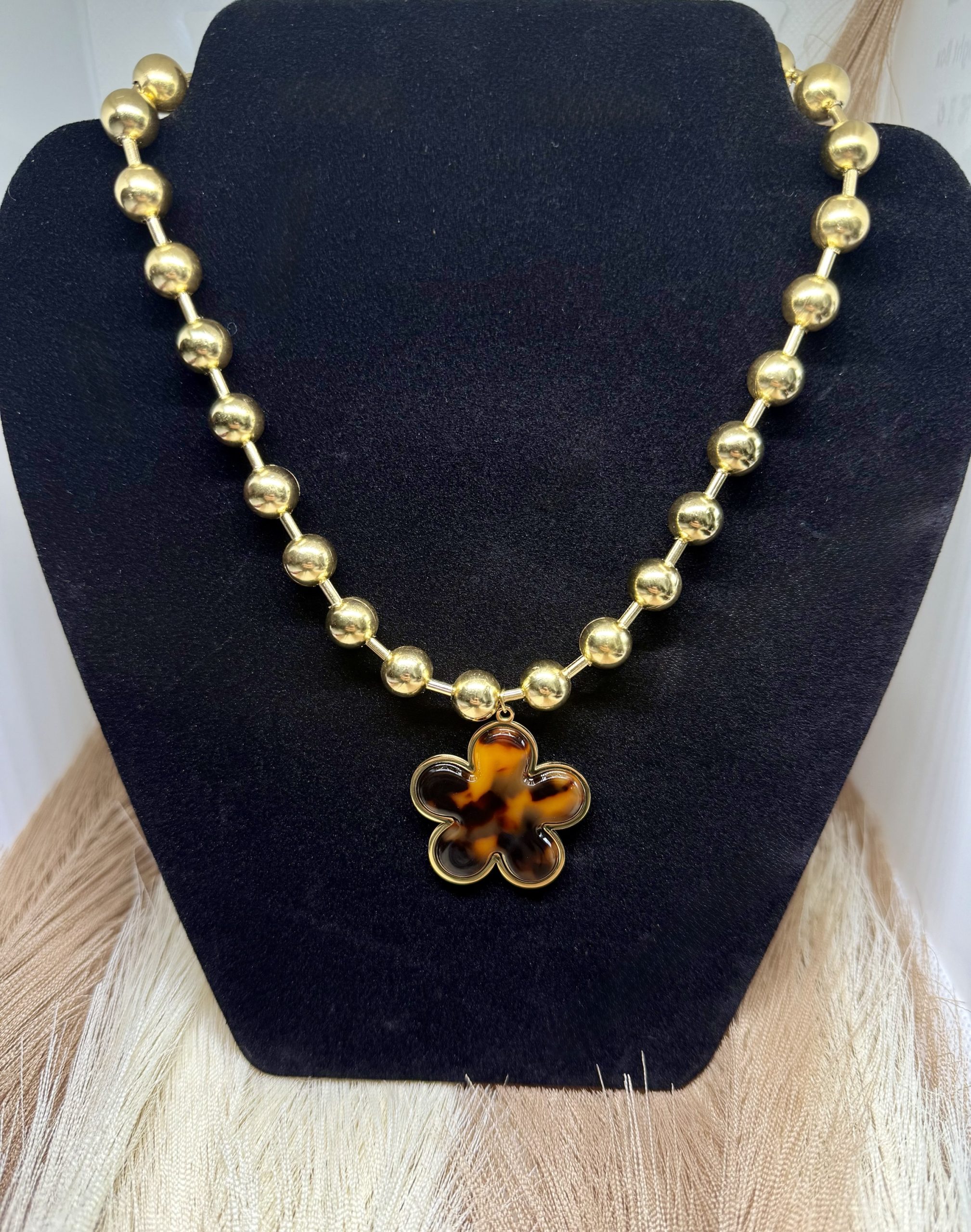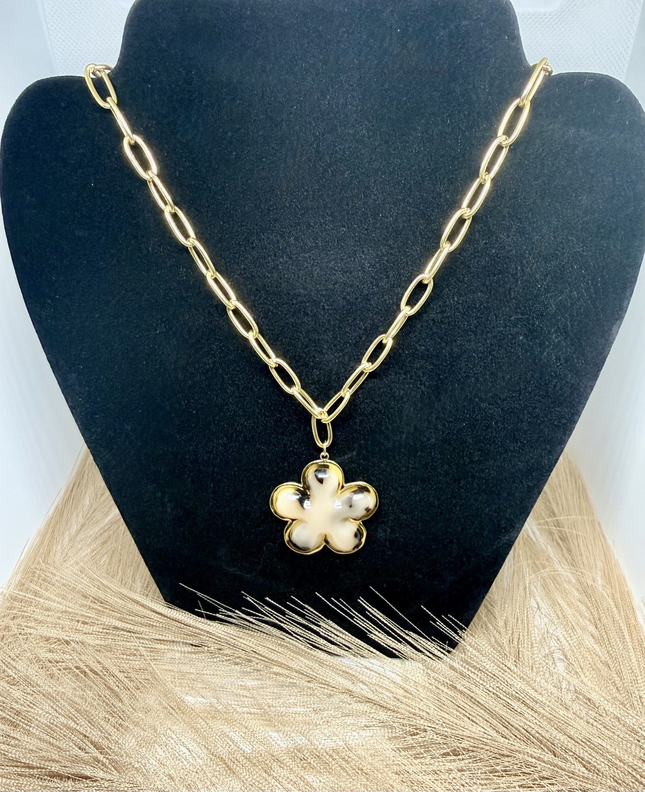 Élégant et audacieux, le collier LIORA marie l’imprimé léopard intemporel à la brillance raffinée de l’acier inoxydable doré. Son pendentif effet écaille en fait une pièce singulière, pleine de caractère, qui sublime toutes vos tenues.